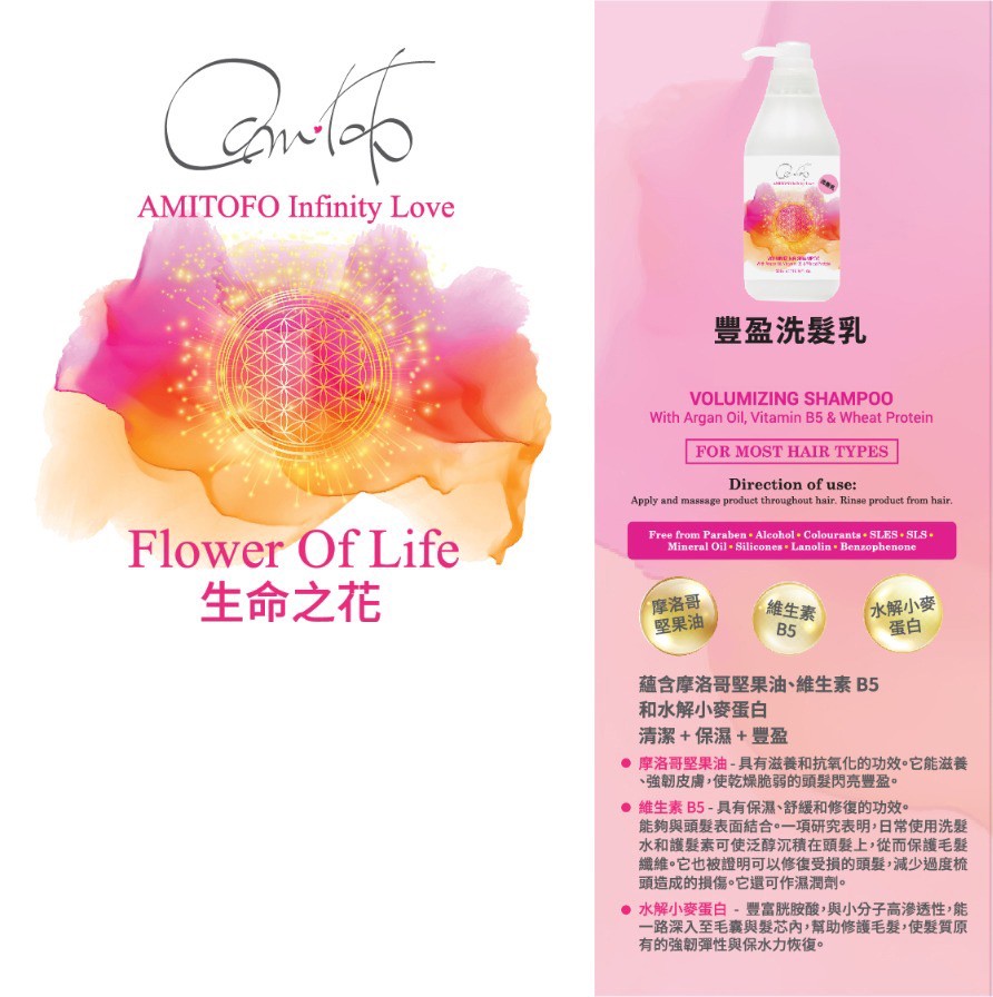 「生命之花」豐盈洗髮乳為您提供了清潔、保濕和豐盈的完美組合,能徹底清潔頭髮和頭皮,同時滋養和修護受損的髮絲。使用後,您的頭髮會變得柔軟、有光澤,同時增加豐盈感,讓您的頭髮綻放出生命之花的美麗光彩。選擇生命之花豐盈洗髮乳,為您的頭髮注入生命之花的力量,讓您的頭髮成為自信和魅力的象徵。
